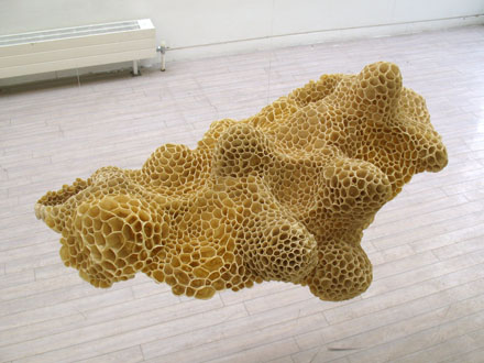 Rooms with a view, 2010 Masking tape, 120cm x 85cm x 50cm (This work grew in size to be the work called Some people knit.)