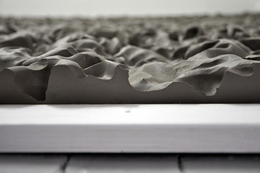 Still live was the other one of my works in the Glasgow School of Art Degree Show. The floor of the room, that in the early days of the Mackintosh building used to be the live sculpture model´s changing room, was covered with 400 kilos of clay. While the clay was still fresh and soft I made toe prints on it. Following installation the clay had a life of its own – it started to dry, shrink, crack and change colour to lighter gray. The process continued through the exhibition.